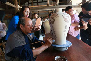 黄卖九(字陶人,悟陶斋老人),男,1938年9月生,江西都昌人。1954年师从景德镇陶瓷新彩画师陆云山先生,1960年入景德镇陶瓷学院艺术系学习深造,1985年被聘为高级工艺美术师,1992年被评为江西省工艺美术大师,景德镇高等专科学校艺术系国画副教授。2006年被授予“中国工艺美术大师”称号,系中国工艺美术学会高级会员,景德镇美术家协会副主席,中国名瓷网陶瓷名家,江西省级大师评委,中国诗书画研究院岭南分院艺术顾问,世界华人联合会艺委会理事。